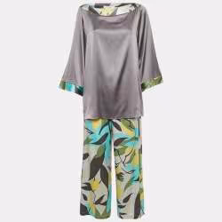 Emilio Pucci Grey/Multicolor Printed Satin Silk Top and Pants Set M/S