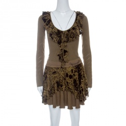Just Cavalli Brown Knit Burnout Velvet Flounce Detail Top and Skirt Set M