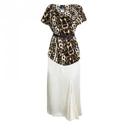 Just Cavalli Brown Animal Printed Satin & Georgette One Shoulder Top And Midi Skirt Set L