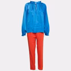 Zadig & Voltaire Blue Satin Ruffled Top and Pants Set L