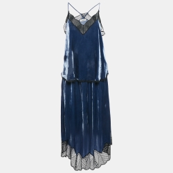 Zadig & Voltaire Blue Velvet Lace Trimmed Top Skirt Set M