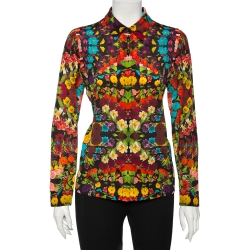 Alice + Olivia Multicolored Silk Kaleidoscopic Floral Print Shirt M