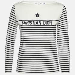Christian Dior White/Blue Logo Jersey Polo T-Shirt XS