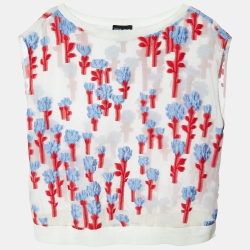 Giorgio Armani White Floral Jacquard Organza Sleeveless Blouse S
