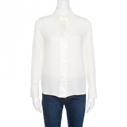 Giorgio Armani Cream Silk Crepe Satin Placket Detail Long Sleeve Blouse S