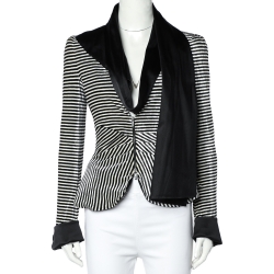 Giorgio Armani Monochrome Striped Velvet Draped Collar Detail Top M