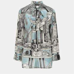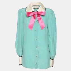 Gucci Jade Green Silk Bow Detail Long Sleeve Blouse M