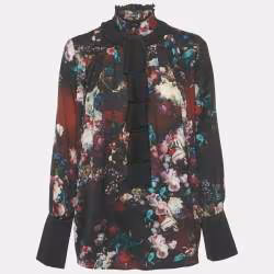Just Cavalli Black Floral Print Satin Ruffled Top M