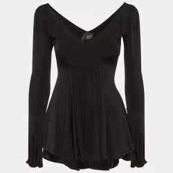 Just Cavalli Black Crystal Embellished Long Sleeve Top L
