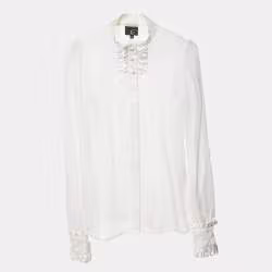 Just Cavalli White Silk Organza Ruffled Sheer Blouse L