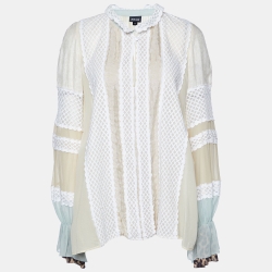 Just Cavalli White Crepe Ruffled Cuff Lace Neck Trim Detail Studded Blouse M