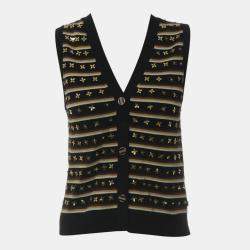 Louis Vuitton Black Monogram Print & Striped Tank Top XL