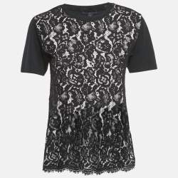 Louis Vuitton Black Printed Cotton & Silk Paneled Short Sleeve T-Shirt XS