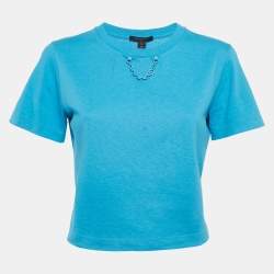 Louis Vuitton White Jersey Metal Logo Embellished Neck T-Shirt M