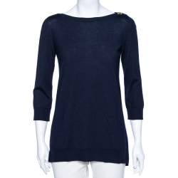 Louis Vuitton Navy Blue Wool Sequin Embellished Oversized Top S