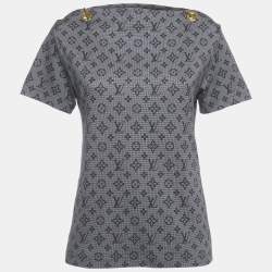 Louis Vuitton Navy Blue Monogram Print Cotton Chain Detail Mahina T-Shirt XS
