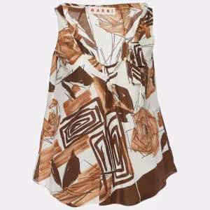 Marni Brown/Cream Cotton Abstract Print Sleeveless Top M