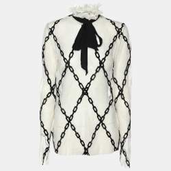 Philosophy Di Lorenzo Serafini White/Black Lace Chain Link Embroidered Tops S
