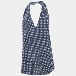 Ralph Lauren Purple Label Navy Blue Printed Silk Halter Top M
