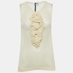 RED Valentino Beige Floral Applique Detail Knit Top L
