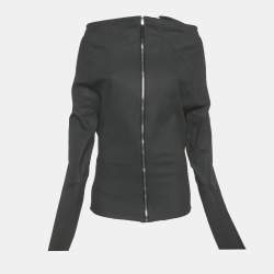 Rick Owens Pearl Green Zip-Up Off-Shoulder Top L