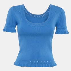 Sandro Blue Stretch Knit Eyelet Quincy Top S