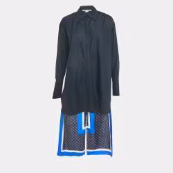 Stella McCartney Navy Blue Printed Silk Button Front Long Tail Detail Shirt XS