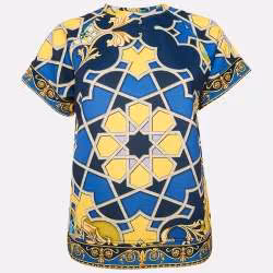 Versace Collection Multicolor Printed Silk & Jersey Hi-Low Hem Top S