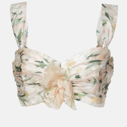 Zimmermann Multicolor Floral Print Linen Blend Gathered Bra Top M