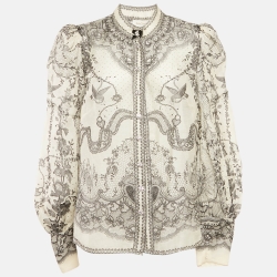 Zimmermann Off-Linen Printed Linen and Silk Button Front Blouse XL