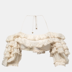 Zimmermann Cream Cotton & Silk Ruffled Crop Top L