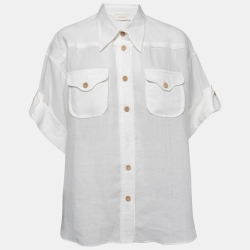 Zimmermann White Ramie Pocket-Detail Short-Sleeve Shirt L