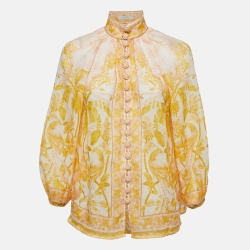 Zimmermann Yellow Floral Print Ramie Buttoned Long Sleeve Blouse S
