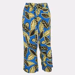 Boutique Moschino Blue/Yellow Leaf Print Crepe Trousers M