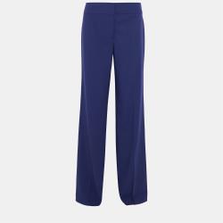 Giorgio Armani Blue Crepe Buttoned Hem Detailed Pants M