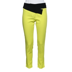 Just Cavalli Neon Yellow Crepe Contrast Waist Detail Tapered Leg Trousers S