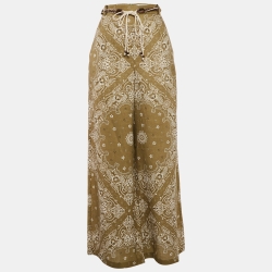 Zimmermann Yellow Floral Printed Linen Belted Wide Leg Trousers M
