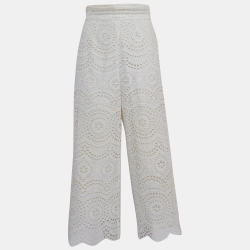 Zimmermann White Embroidered Cotton Meridian Cropped Trousers M