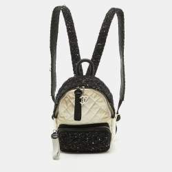 Chanel White/Black Aged Quilted Leather Small Gabrielle Backpack
