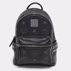 MCM Black Visetos Coated Canvas Mini Studded Stark-Bebe Boo Backpack