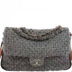 Chanel Beige Diamond Stitch Tweed Maxi Nature Flap Bag