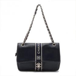 Chanel Blue Caviar Leather Chevron Flap Bag