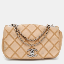 Chanel Beige Quilted Jute And Wicker Floral Embellished Wild Stitch Flap Bag