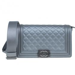 Chanel Grey Calfskin Medium Boy Flap Bag