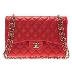 Chanel Red Lambskin Jumbo Double Flap Bag