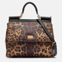 Dolce & Gabbana Black/Brown Leopard Print Coated Canvas and Leather Medium Miss Sicily Top Handle Bag