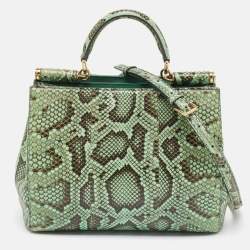 Dolce & Gabbana Green Iguana Embossed Leather Medium Miss Sicily Top Handle Bag