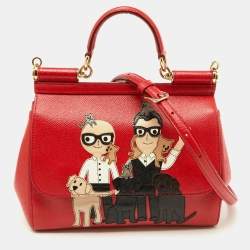 Dolce & Gabbana Red Leather Miss Sicily Top Handle Bag