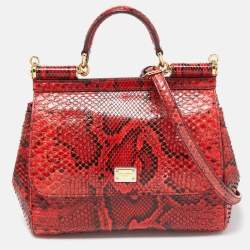 Dolce & Gabbana Red Leather Small Miss Sicily Top Handle Bag