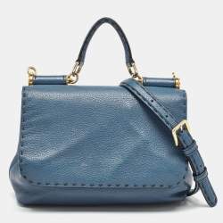 Dolce & Gabbana Light Blue Leather Medium Miss Sicily Embellished Top Handle Bag